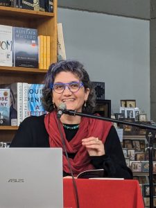 Tina Biello is Italian by way of Lake Cowichan, BC. She is born to immigrant parents from Southern Italy and currently lives on the traditional territory of the Snaw-naw-as people. She was Nanaimo’s Poet Laureate from 2017-2020. She is an actor, poet and playwright and has 4 books of poetry published. Her first book of poetry, In the Bone Cracks of the Walls, with Leaf Press, are stories of her ancestral village in Italy and her most recent work with Caitlin Press, The Weight of Survival, looks at themes of coming from two places. She loves to collaborate and has worked with composers, singers, painters, and dancers and has recently collaborated with the Vancouver Island Symphony with new symphonic works set to her poetry.